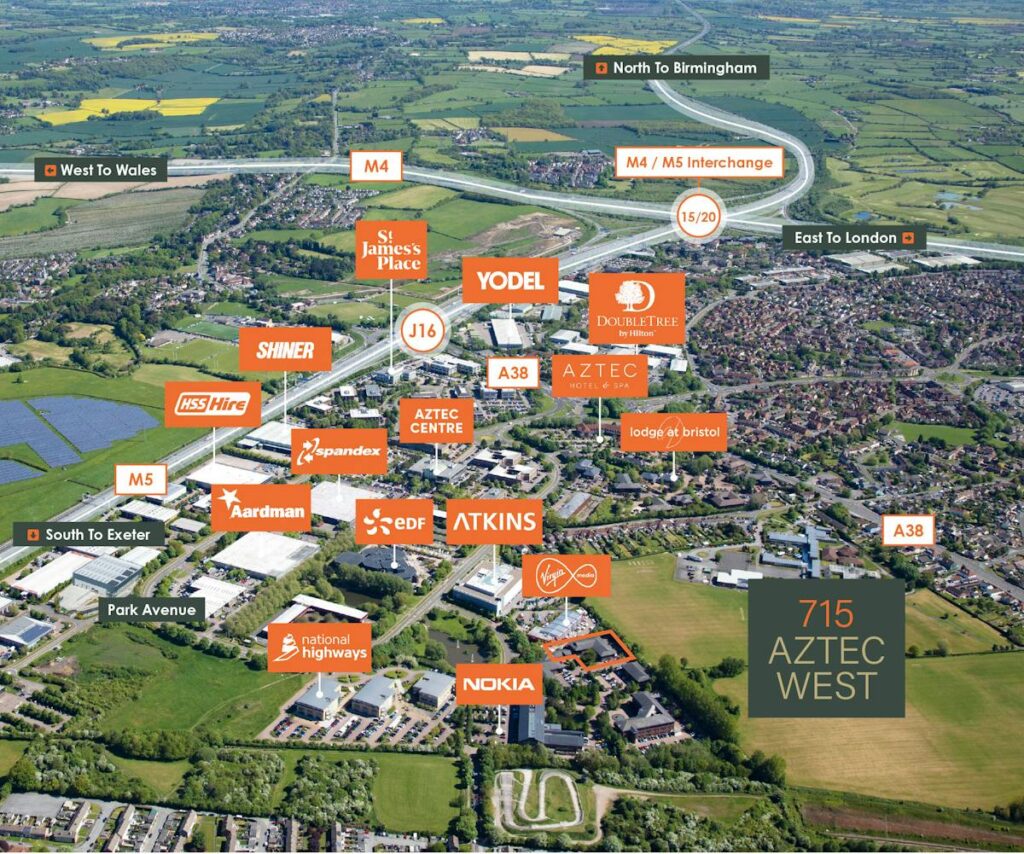 The property is located in Aztec West, Bristol’s premier business park. Covering an expansive 152 acres, it is the most established out-of town office location in the South West, making it a top choice for businesses. The park can be easily accessed off the A38, approximately 5 minutes to Junction 16 of the M5, and Bristol City Centre is approximately 8 miles to the south.