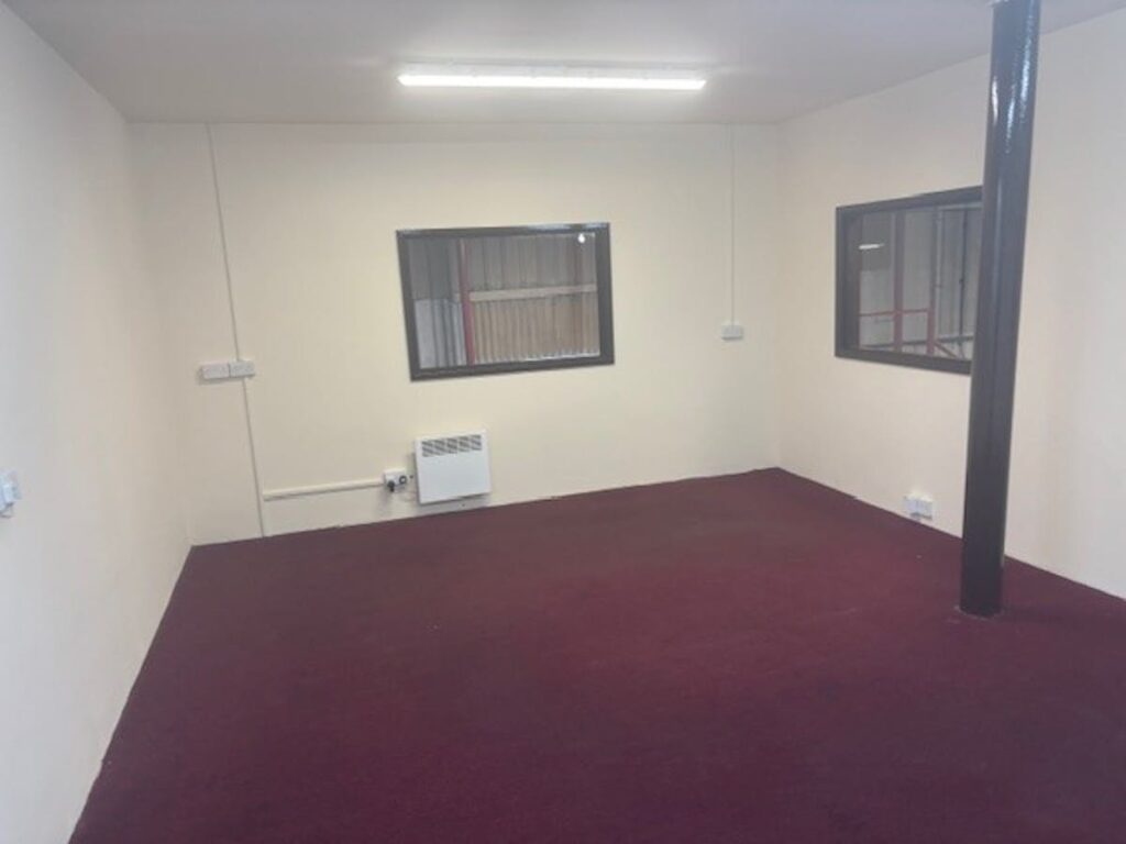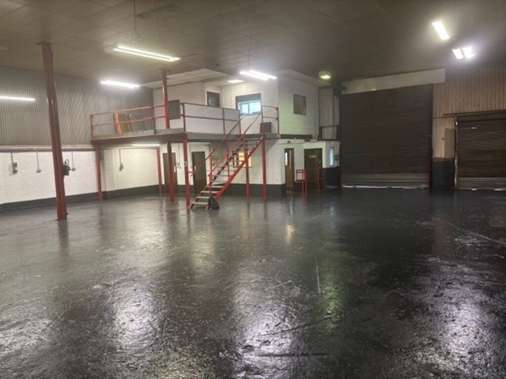 The property comprises a mid terrace industrial warehouse of brick construction with metal cladding. Internally the unit has ground and first floor offices with WC at ground floor. There is an electric roller door on the front elevation, the property benefits from a minimum eaves height of 5m. Externally, the unit has a demised car parking area.